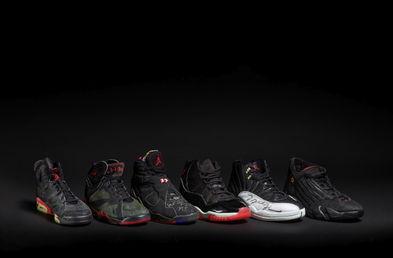 Banner Image: A set of six Michael Jordan ‘Championship Clinching’ Game Worn Air Jordan Sneakers, which sold for $8 million at Sotheby’s in February 2024.